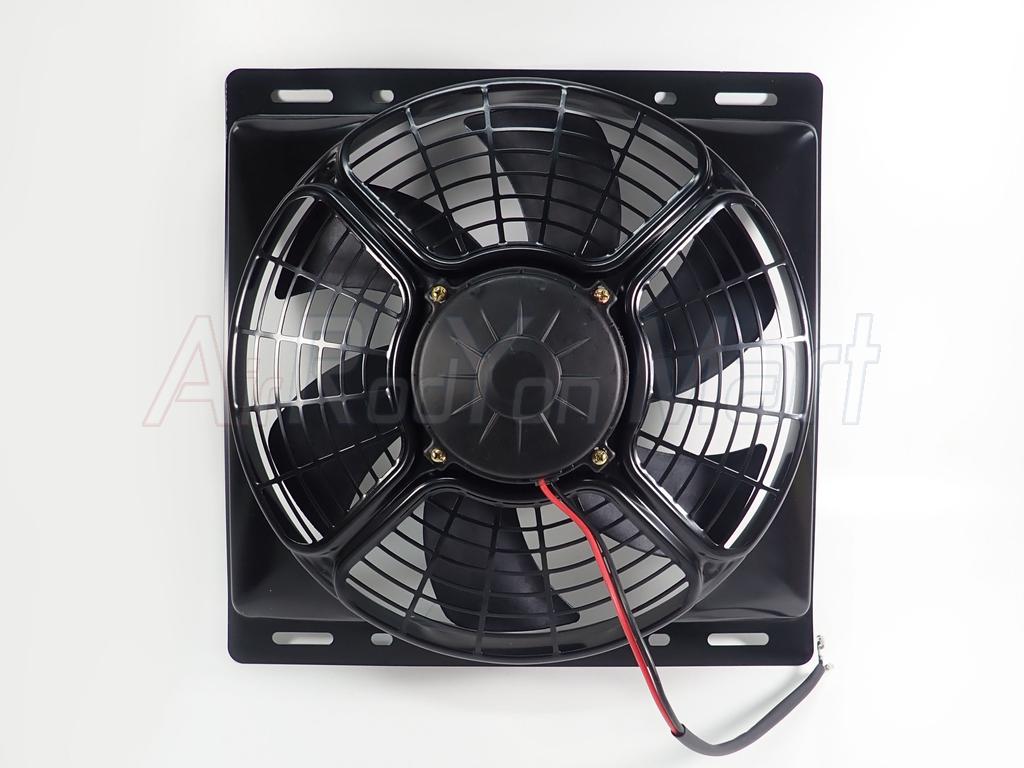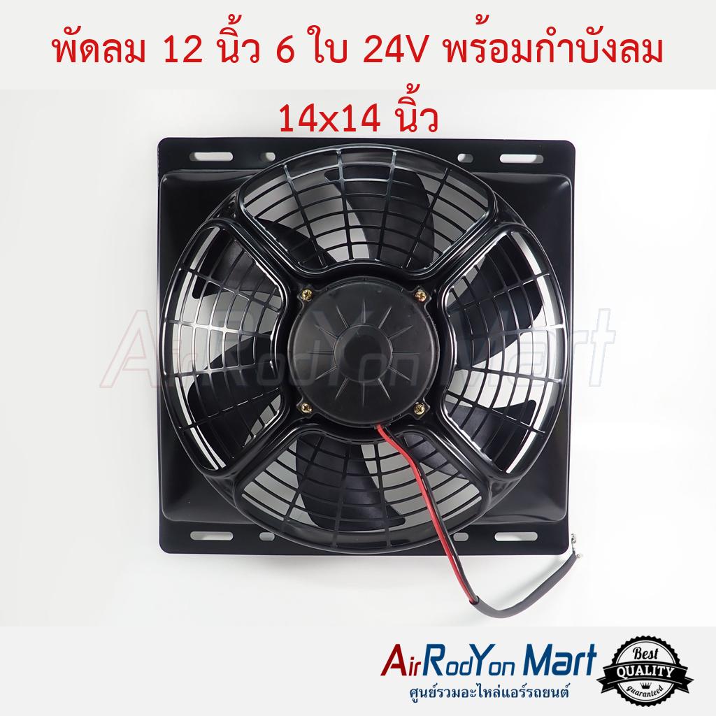 พัดลม 12 นิ้ว 6 ใบ 24V พร้อมกำบังลม 14×14 นิ้ว (พัดลมดูด 24V)