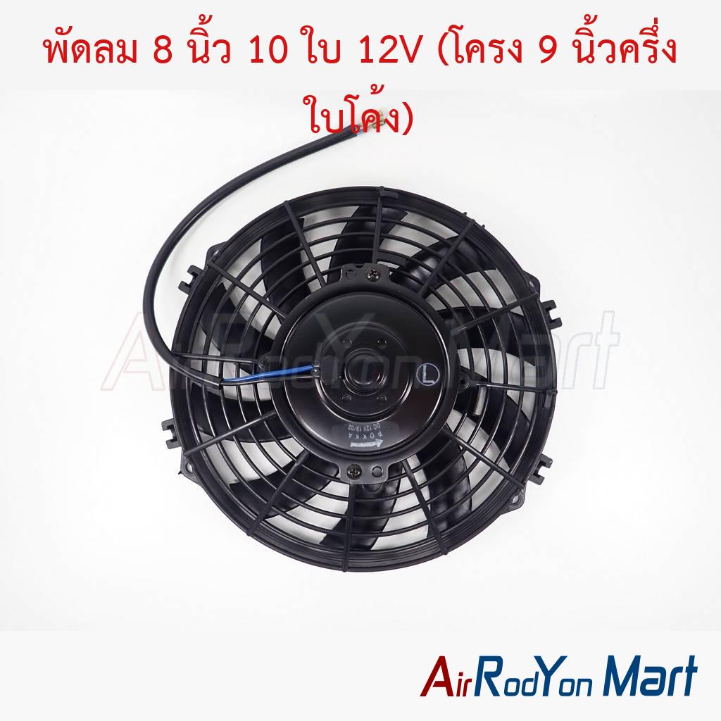 พัดลม 8 นิ้ว 10 ใบ 12V (โครง 9 นิ้วครึ่ง ใบโค้ง) ระบบไฟ DC 12V #พัดลมเป่าแผงรถยนต์ #พัดลมแอร์