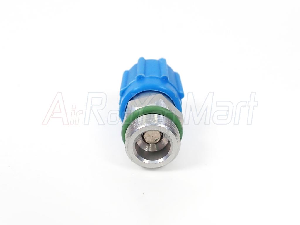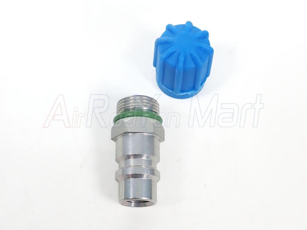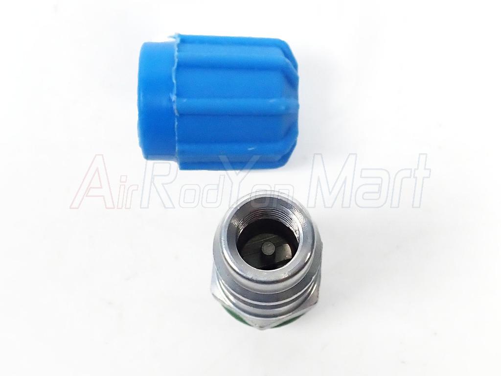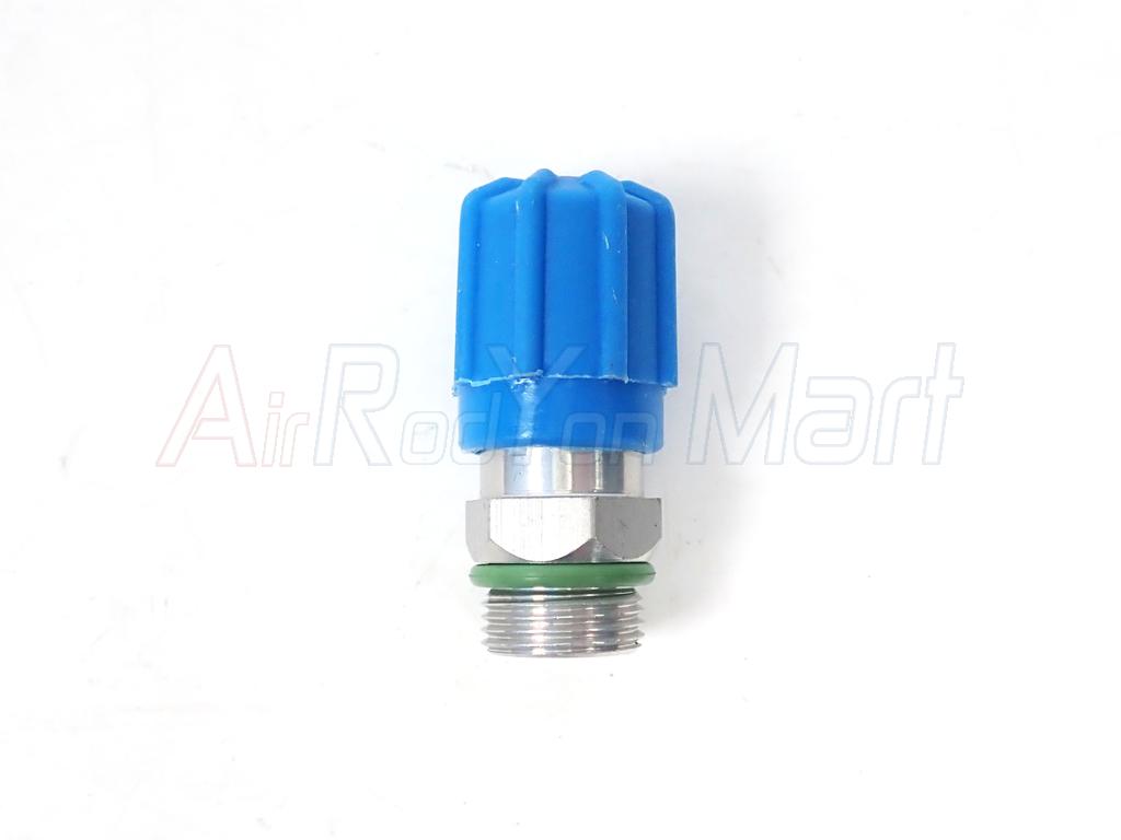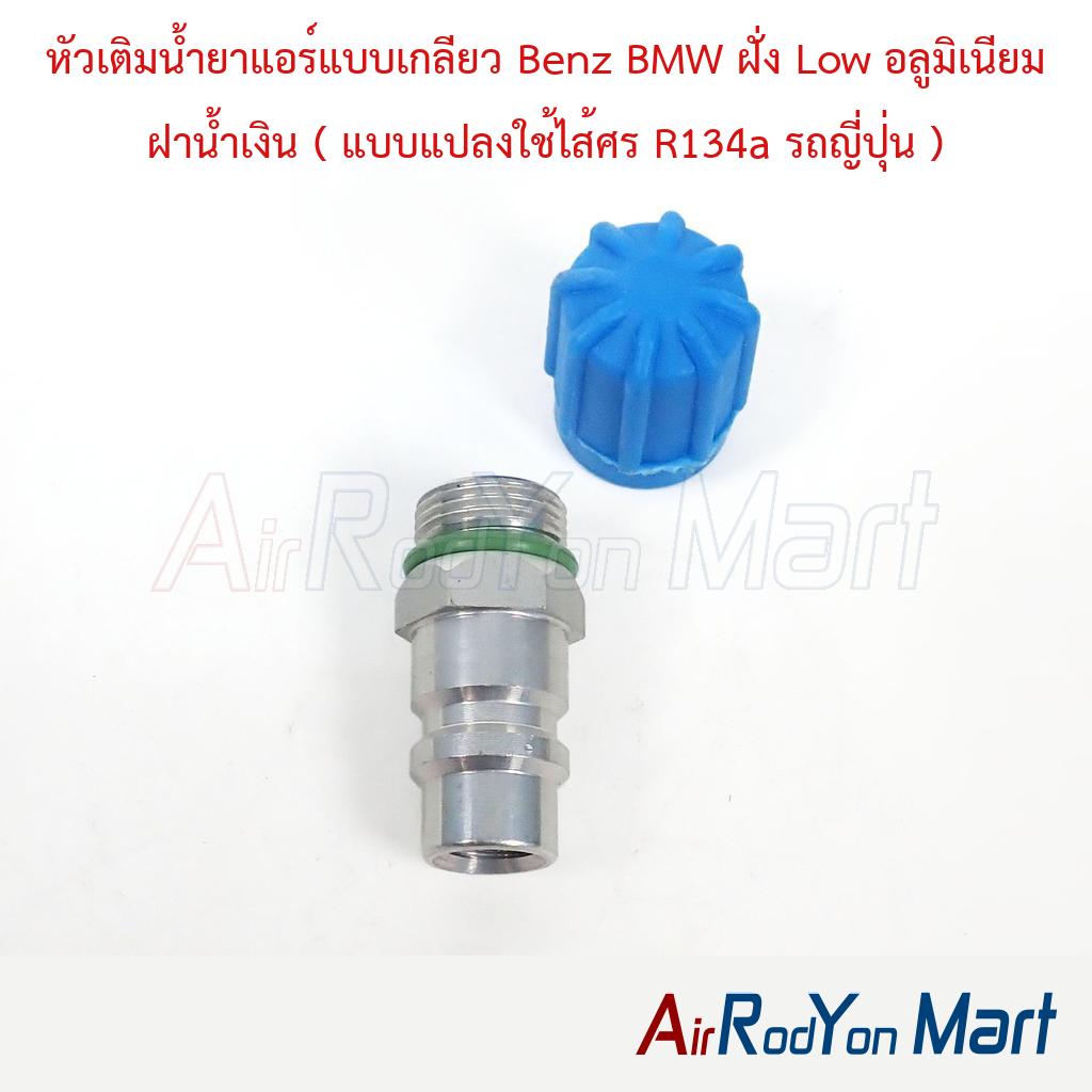 หัวเติมน้ำยาแอร์แบบเกลียว Benz BMW ฝั่ง Low อลูมิเนียม ฝาน้ำเงิน ( แบบแปลงใช้ไส้ศร R134a รถญี่ปุ่น )