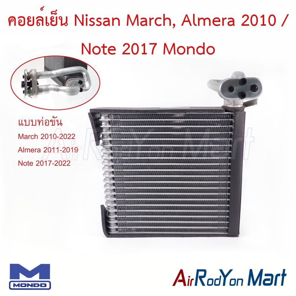 คอยล์เย็น ตู้แอร์ Nissan March, Almera 2010 / Note 2017 พร้อมท่อแป๊ปแบบขันน๊อต Mondo